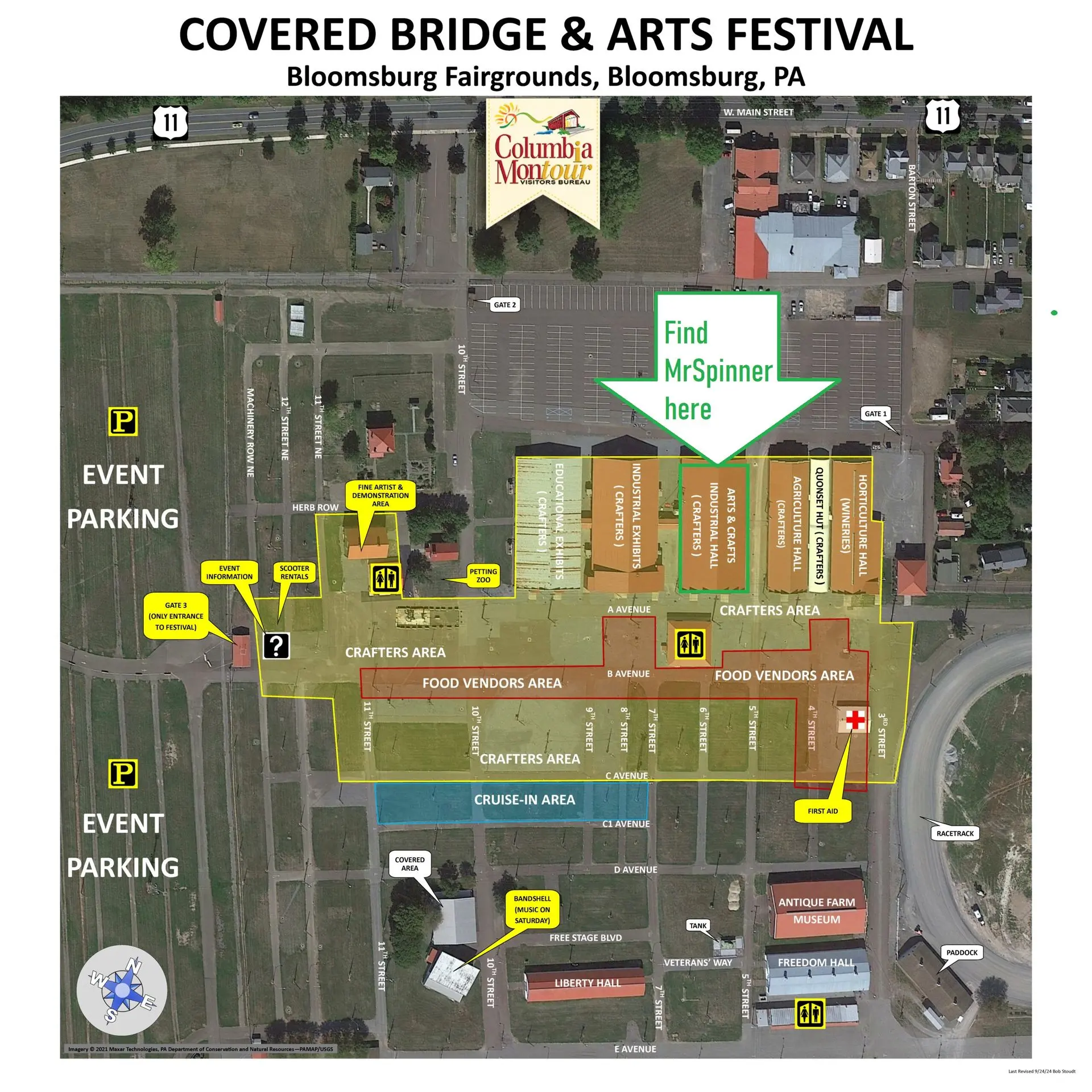 The 43rd Annual Covered Bridge & Arts Festival will be held at the Bloomsburg Fairgrounds from October 2-5, 2025. It showcases hundreds of crafters as well as fine artisans and food vendors. The event is one of the largest craft festivals on the East Coast.
